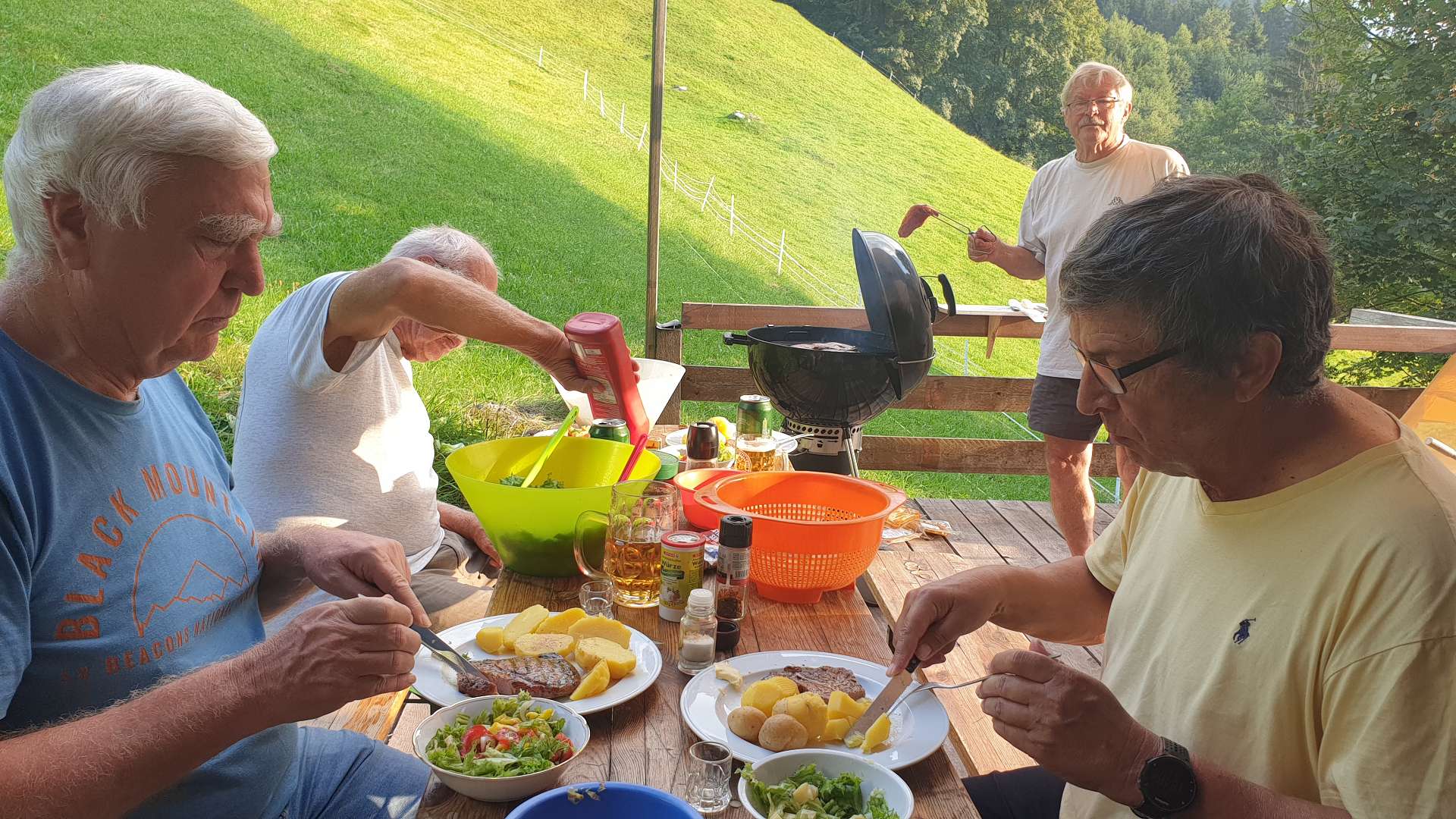 Wieder eine übersichtliche Teilnehmerzahl - die Terminverschiebungen wg. anhaltendem (natürlich klimawandelbedingtem) Schlechtwetter und Opa-Verpflichtungen in der Ferienzeit ließen die Anzahl schrumpfen. Gut, dass mit Roland frisches neues Blut hinzukam.