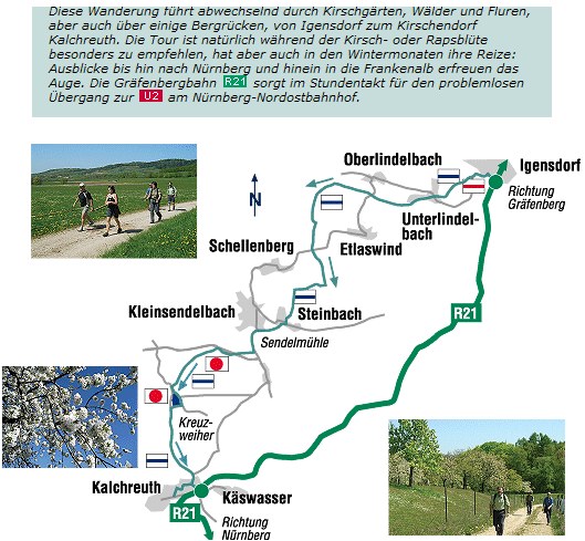 "Zum Kirschendorf" Igensdorf – Unterlindelbach – Steinbach – Kreuzweiher – Kalchreuth, 17 km, 4,5 Std. Text und Bild: VGN |