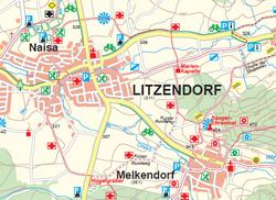 Karte der Skulpturenwege und Sehenswürdigkeiten um Litzendorf
