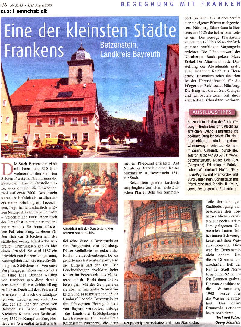 Bilder: -Herbert Liedel (in der NZ) Panoramino: -im Veldensteiner Forst, zygi42, -Leupolodsteiner Wand, Ixmeier Markus, -Jakobskirche Bronn, vagabunt |