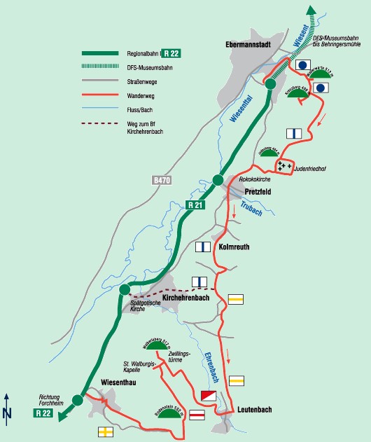- von Thuisbrunn nach Pretzfeld 16,5 km (VGN,