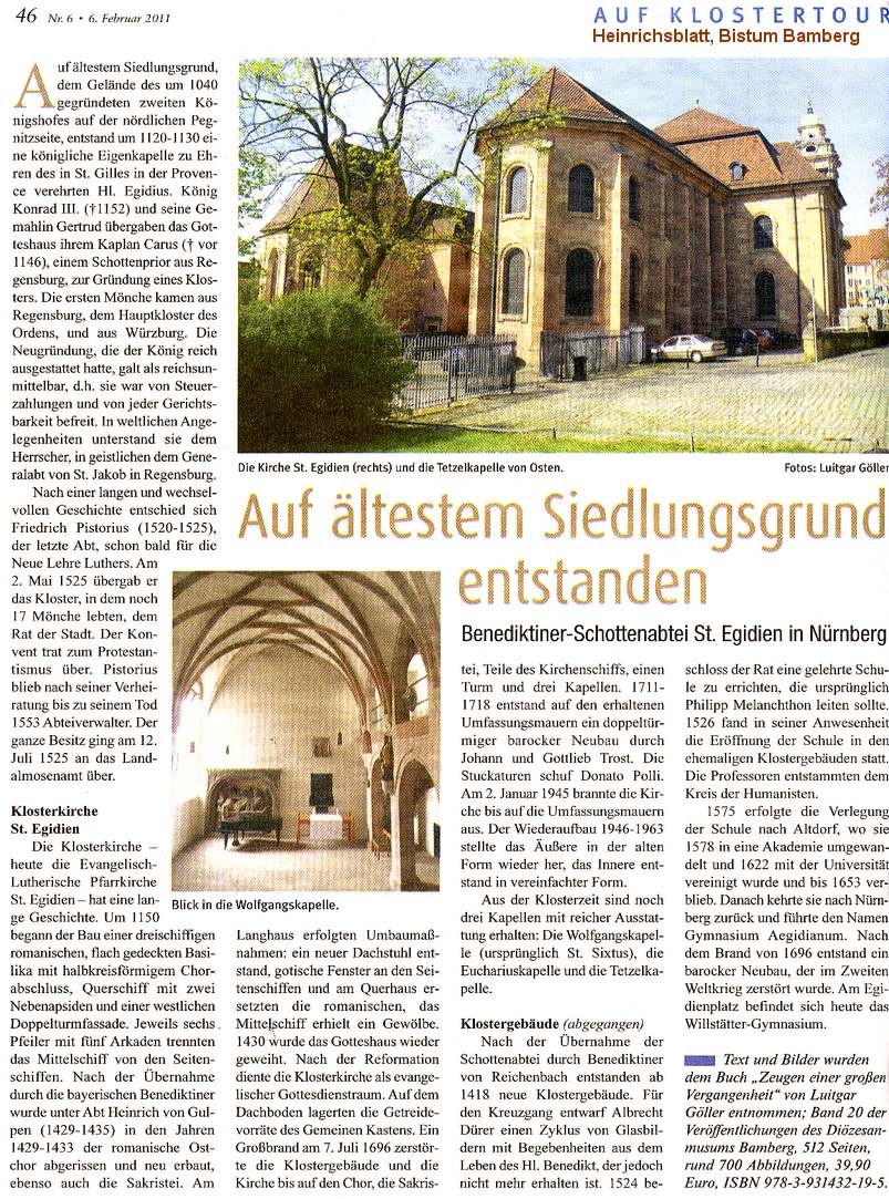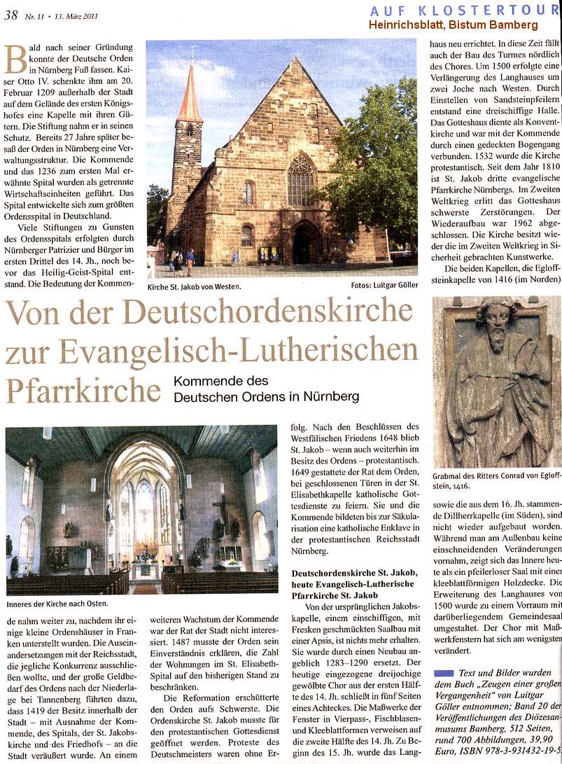 Aus dem Heinrichsblatt des Bistum Bamberg:  - Die Egidienkirche,  - die Deutschordens-Jakobskirche