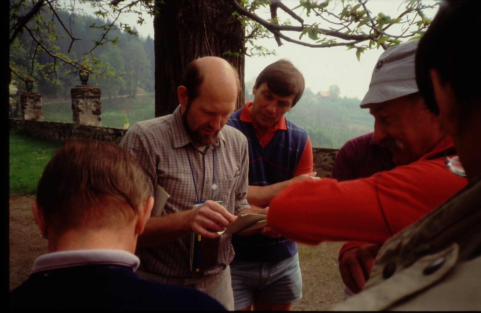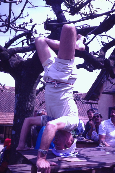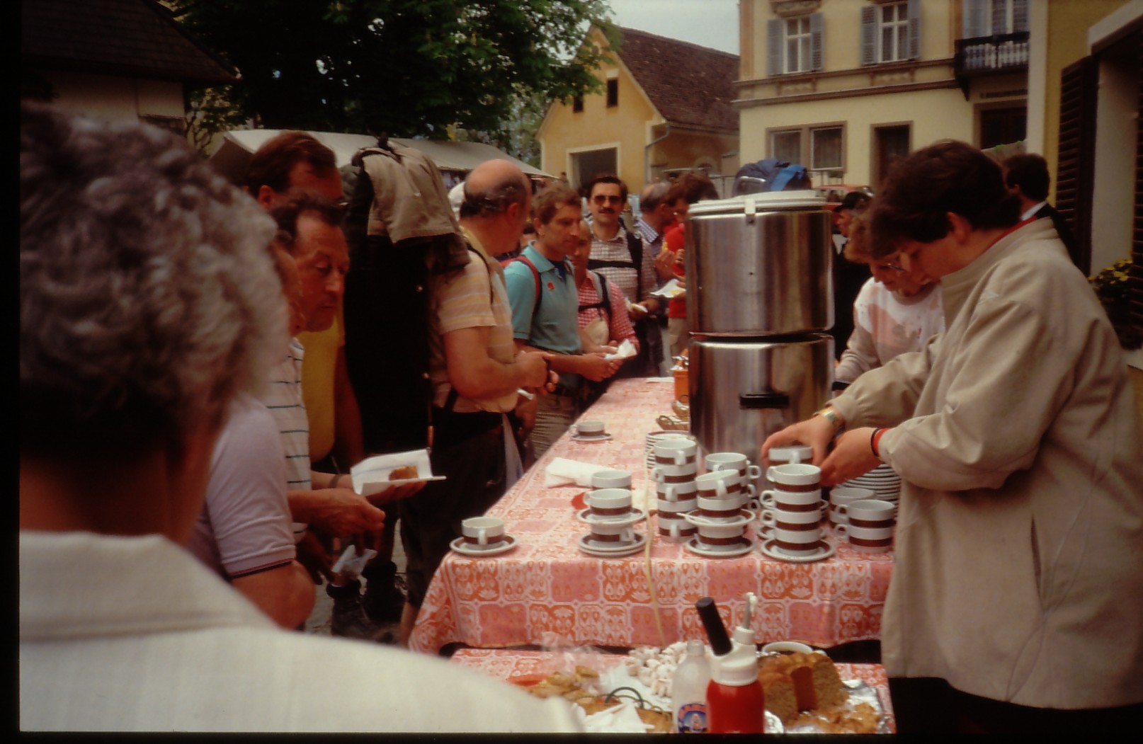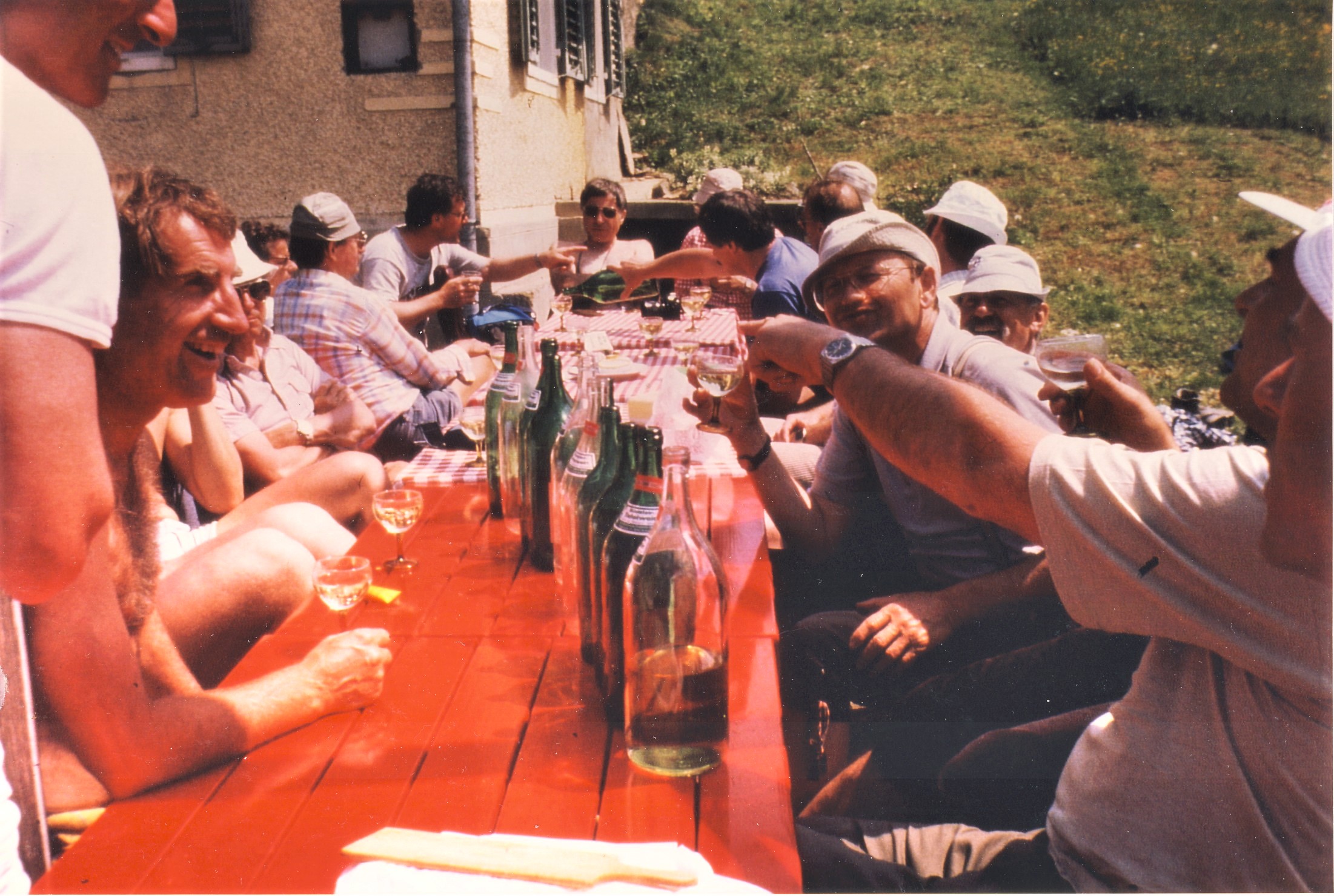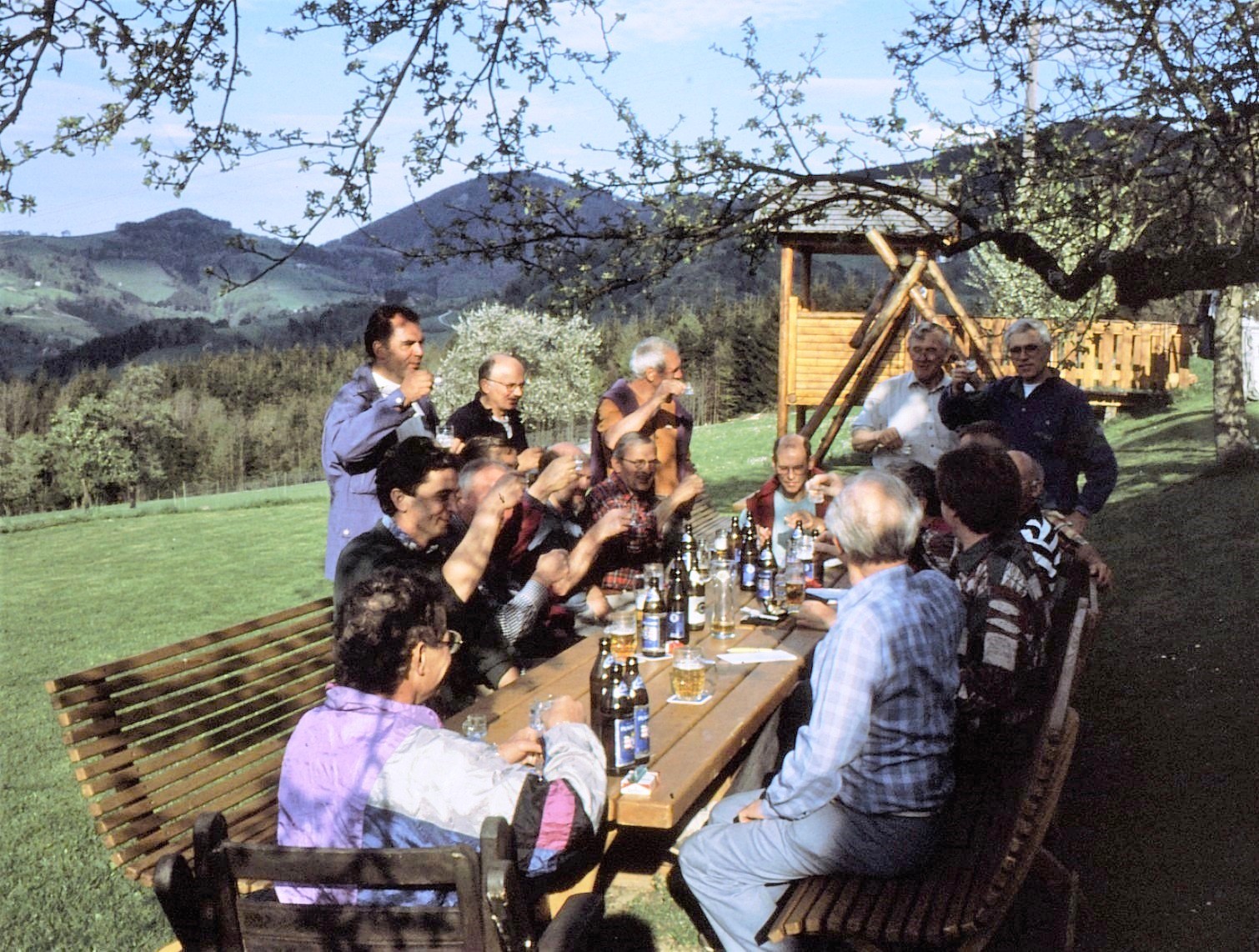 | o | Auf dem Weg von Remschnigg hinunter nach Leutschach. Horst-Dieter schimpft 'mal wieder auf das Rauchen: "Auf der einen Seite riechen die (die Raucher) ja auch ganz schön". Darauf Rudi: "Auf der anderen Seite riechen die ganz anders" |
