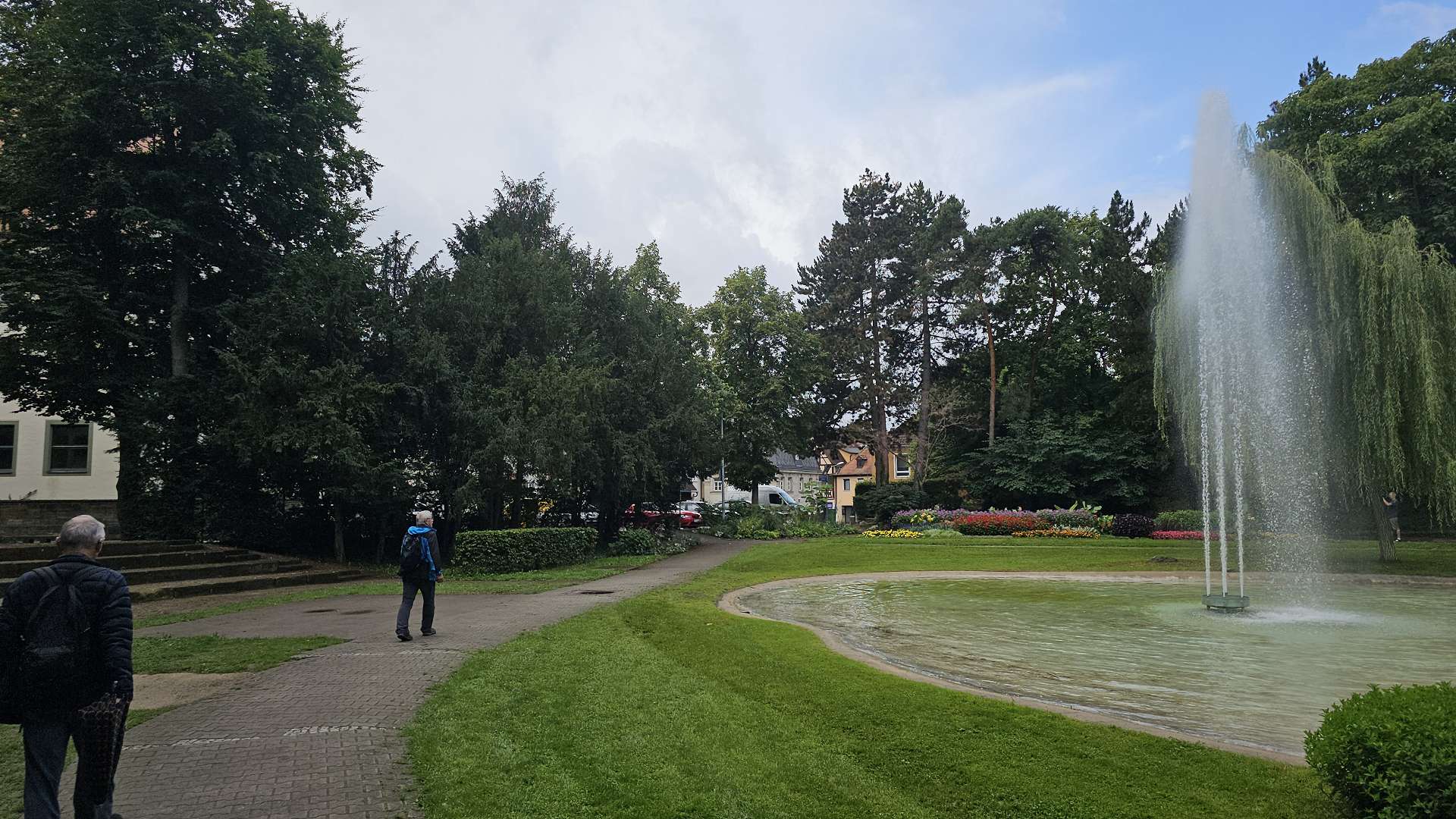 Katzensprung bis zum Stadtlokal. Nach dem Essen ging es, bei immer noch leichtem Nieselregen, durch die Holzstraße Richtung Marktplatz zu unserem "Standard-Eiscafe" Garda: hier gibt es ein ausdrückliches Lob für die fairen Preise und die gute Qualität! Den direkt gegenüber der