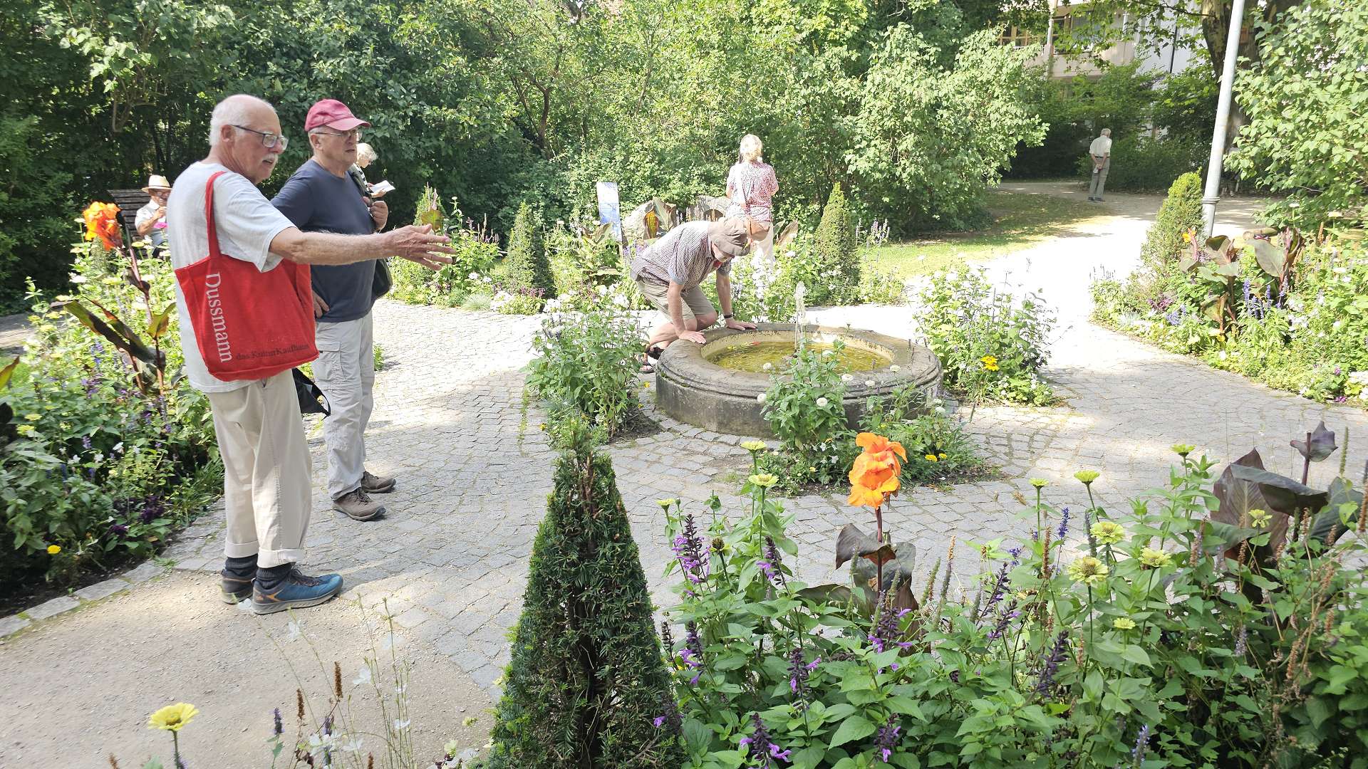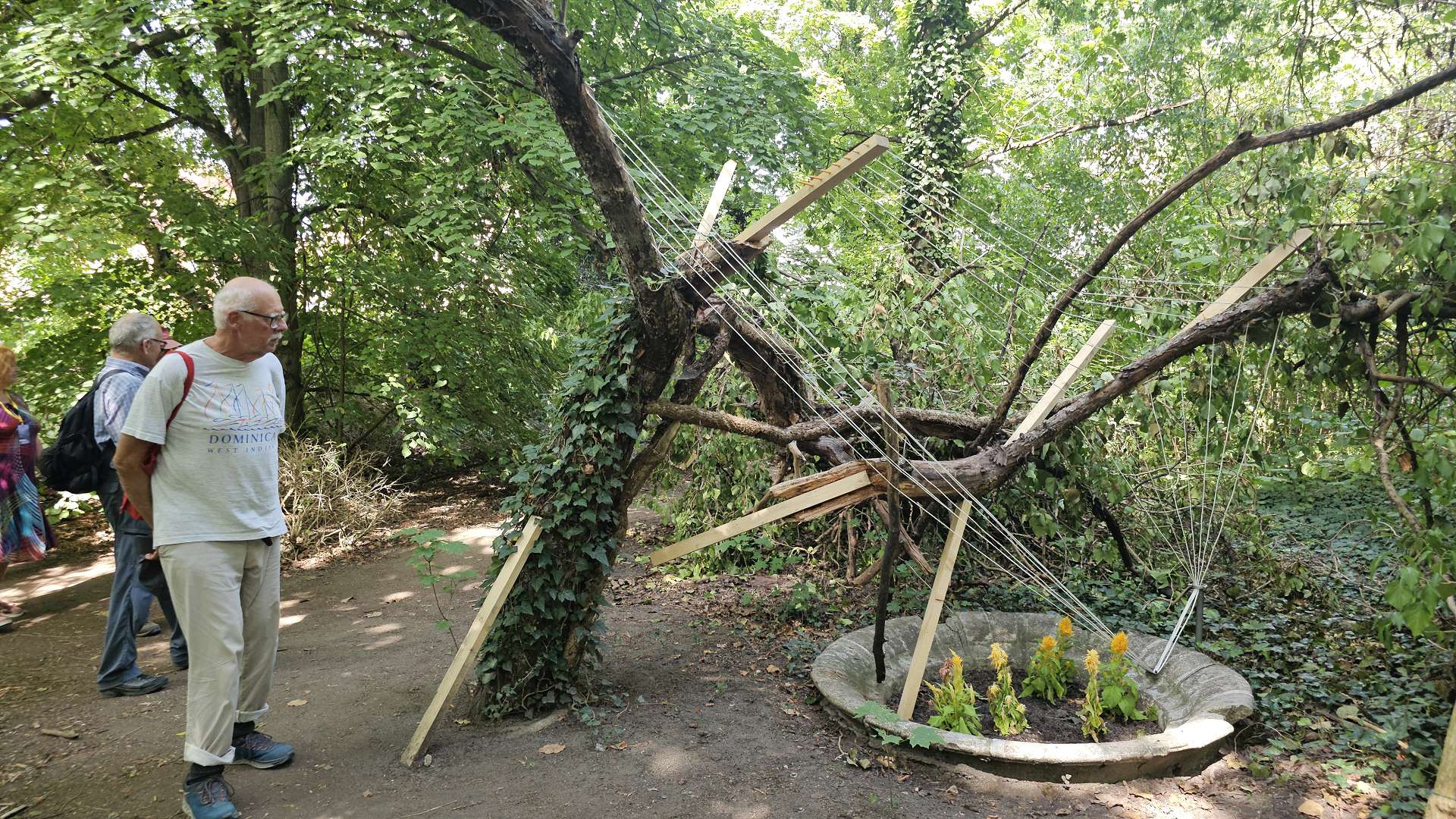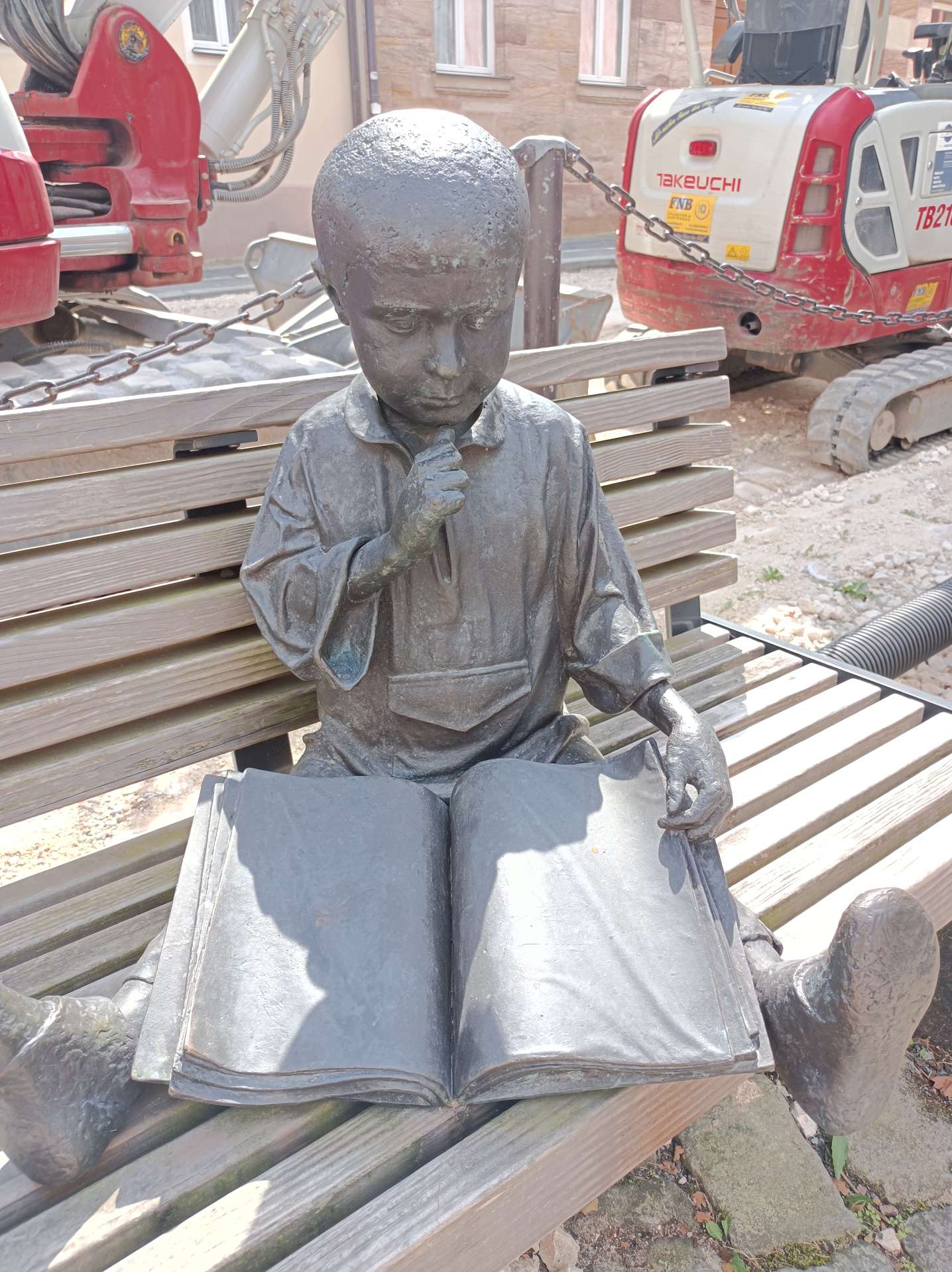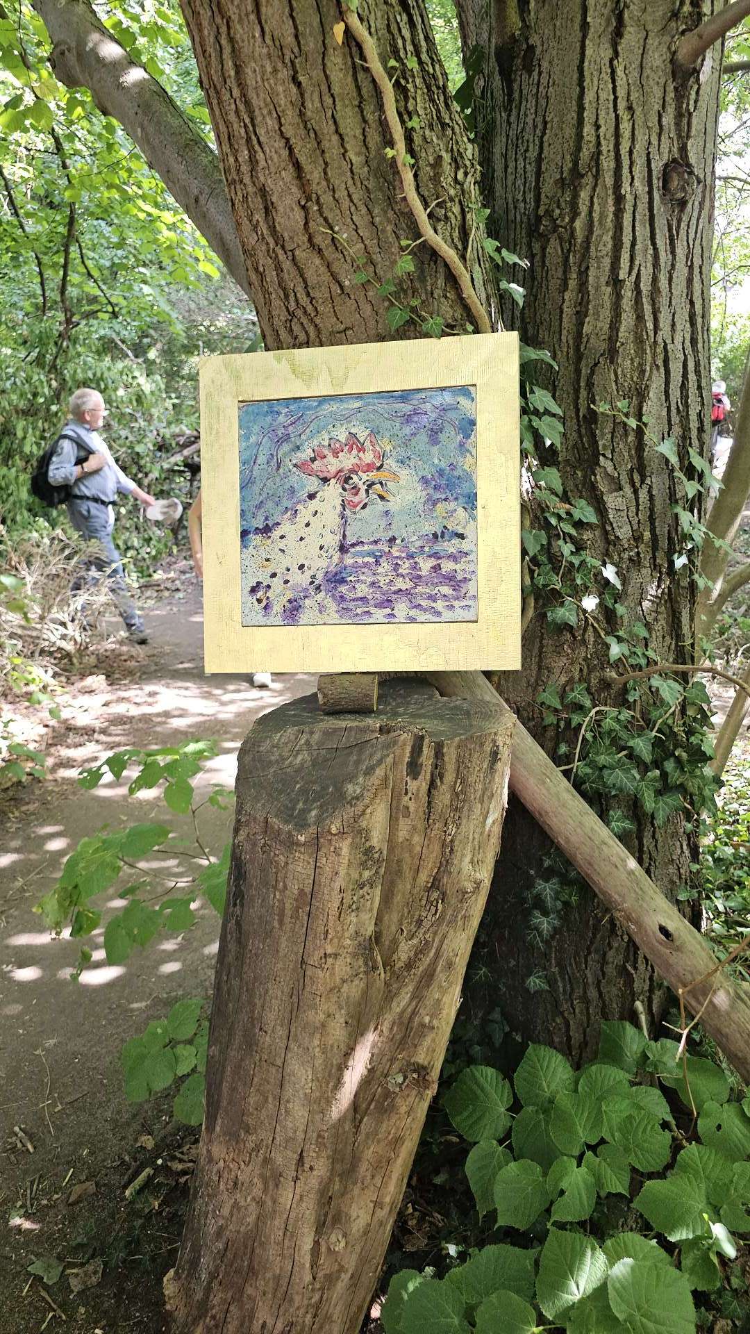 weiterzuentwickeln. Orientiert haben wir uns an diesem Plan und der Beschreibung dazu. Und ehrlicherweise muss gesagt werden, dass sich ein "kleiner Rundgang" auch für Banausen lohnt (s. Bilder); Schwabach ist ja auch ohne Ortung eine schöne Stadt. Wir starten, nach einer versehentlichen BusRundreise über Unterreichenbach, am Schillerplatz (Bus-Station Rathausplatz war gesperrt). Die ersten Stationen auf dem Weg zum Königsplatz sind noch nicht geöffnet, so ist unser erster Anlaufpunkt die Station 6 (goldenen Schrottautos) und dann die Martin-Luther-Kirche. Schon die allein ist einen Besuch wert und die Ausstellungsstücke darin gehören (mit dem Sinn! der Beschreibung) zu den Sehenswerteren. Dann geht es vorbei an der Tatze "zum gpldenen Stein" zur Station 28 und 20 (an der haben wir gar nicht gefunden), dann zur Station 26 und 21, an der die Umgebung (Häuser und Bach) den besten Eindruck hinterlässt. Nach ca. einer 3/4-Stunde sind wir an der "Alten Linde" Der markante Baum, nahe des Hördlertors an der Regelsbacher Straße/Badstraße, soll (laut Hinweistafel) 1768 gepflanzt worden sein. Fachleute schätzen das Alter allerdings beträchtlich höher ein. Man hat viel getan, um den imposante Baum zu erhalten: Zementplomben, Stahlstreben und um die Wurzeln wurden Drainagen gelegt, die Krone wurde radikal beschnitten. Der Jemmeritzer "1000-jährigen" Eiche hat das bekanntlich nicht gut getan, sie ist eingegangen. Dieser Baum zeigt, Gott sei Dank, eine außergewöhnliche Vitalität. Weiter geht es am