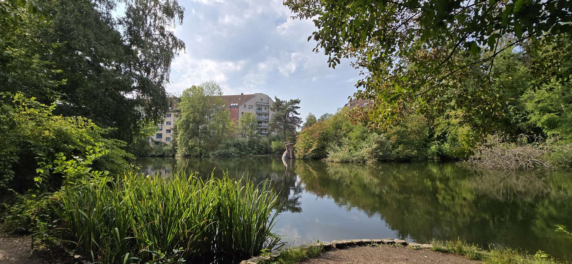 😖 zu treffen. Wir starten am Bushalt Hans-Fallada-Str. in Langwasser. Ein schöner Ausgangspunkt, denn nach wenigen Metern sind wir bereits im Grünen, am Langwasser(bach) und nach weniger als 300 Metern bereits am Langwassersee - und das mitten in einem großen Wohngebiet.