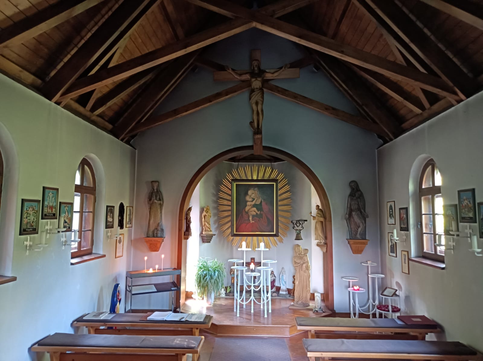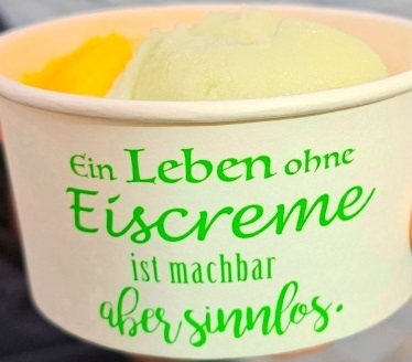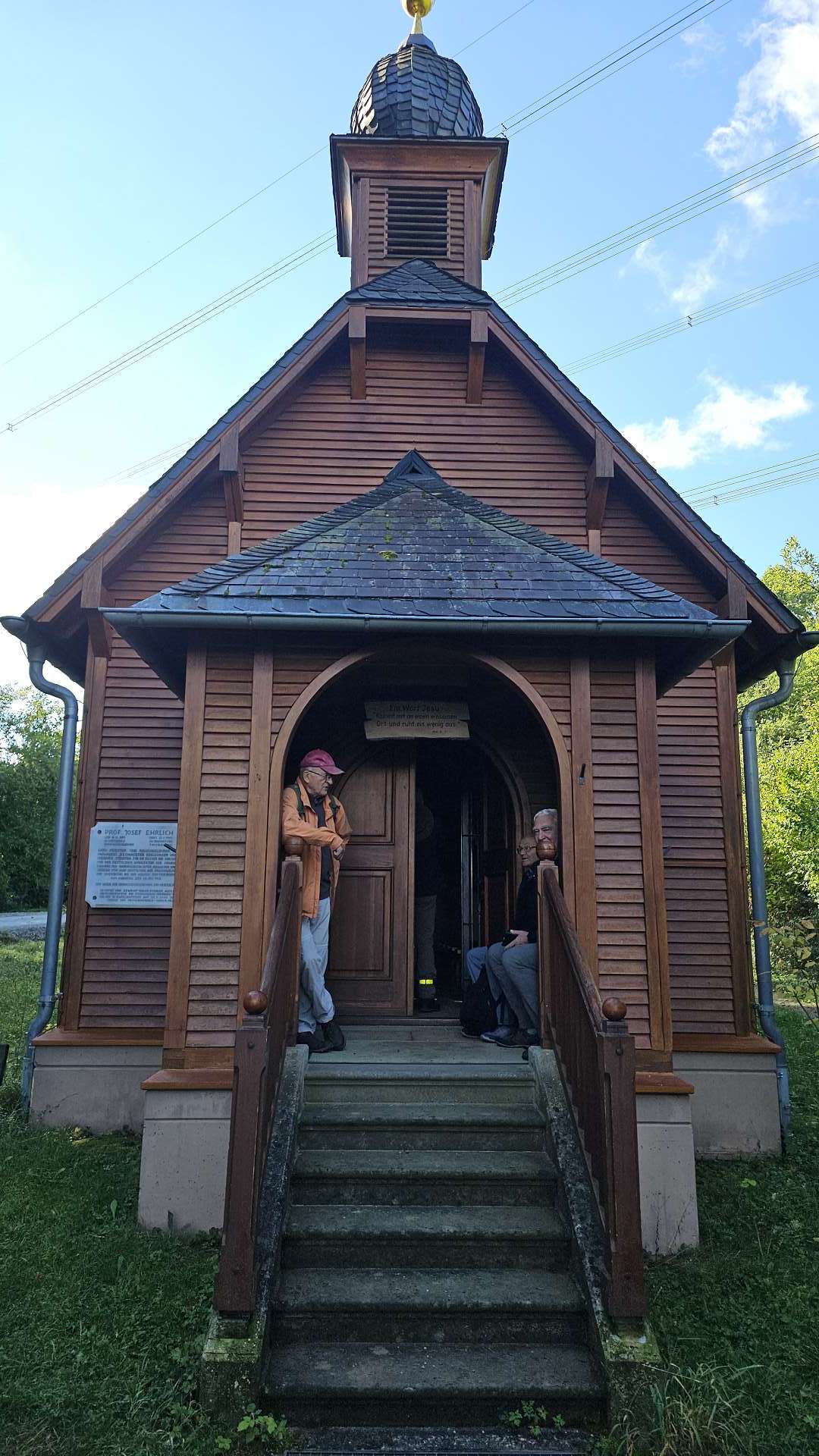 leuchtend weißen Vexierkapelle. Wir genießen einen Moment lang die Stille an diesem Ort und freuen uns über den herrlichen Blick in das schöne grüne Tal mit (wieder) der Vexierlapelle im Hintergrund. Nach einer knappen Stunde sind wir dann in Serlbach und gönnen uns im "Gasthaus zu den Linden" Rehbraten, Schnitzel, Roulade und, na ja, ein Veggischnitzel ist auch dabei 😖. Allerdings hat sich unser Genuss-Asket danach doch noch etwas kulinarisches gegönnt: denn auch er weiß, --> Nach einer erholsamen