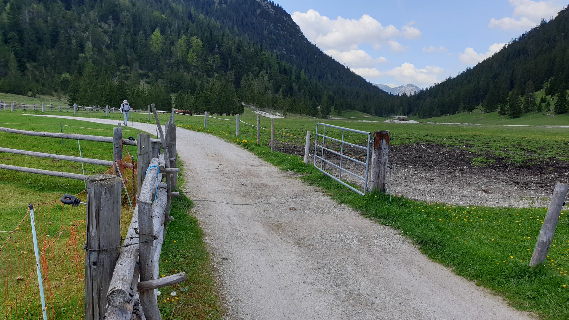 hinter der Klamm, oben: vor-, unten: nach dem Abstieg Richtung Mittenwald |
