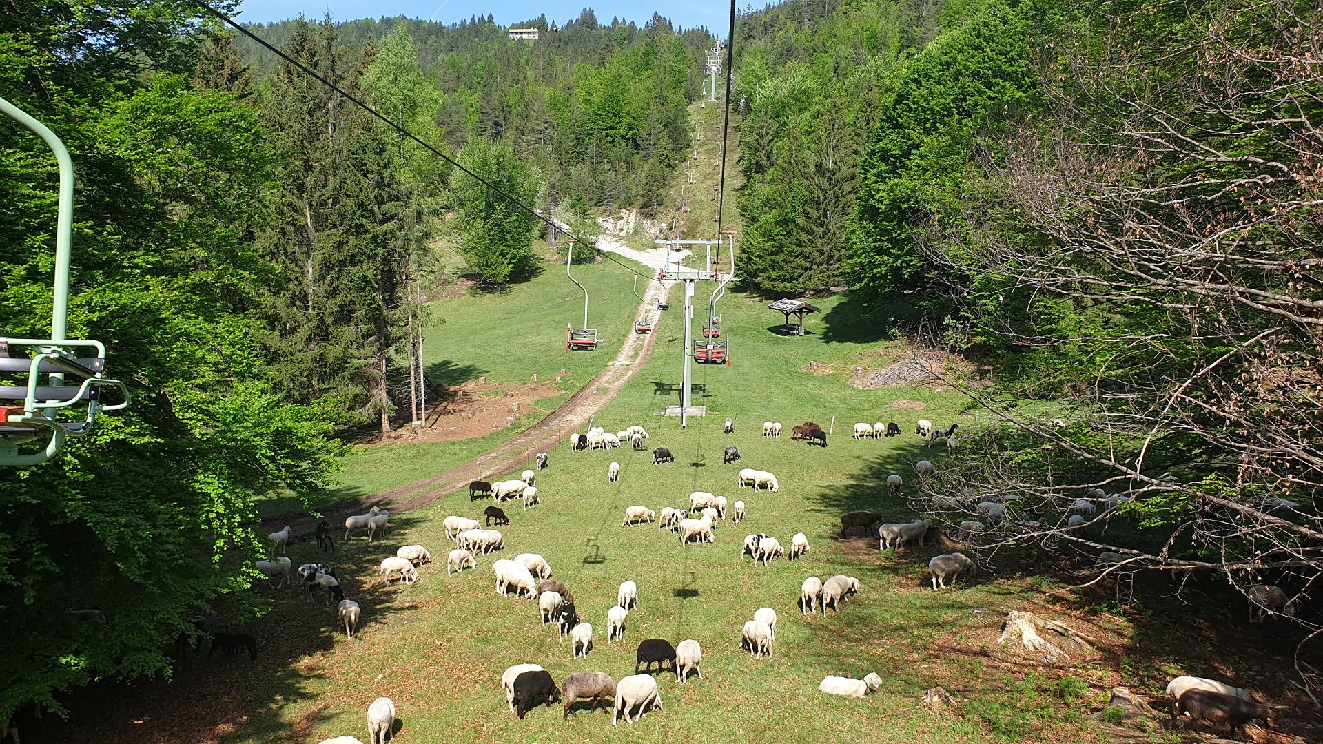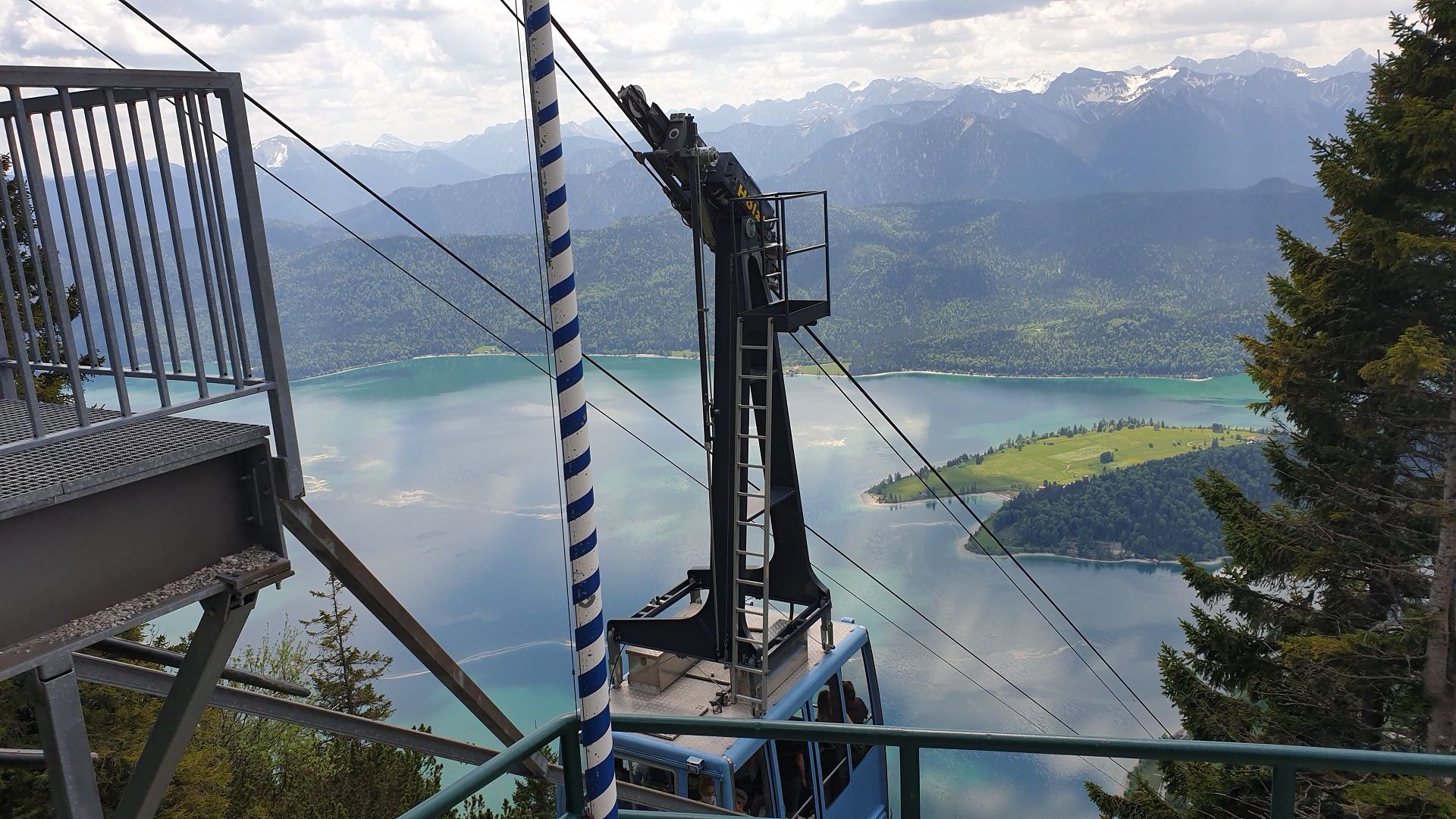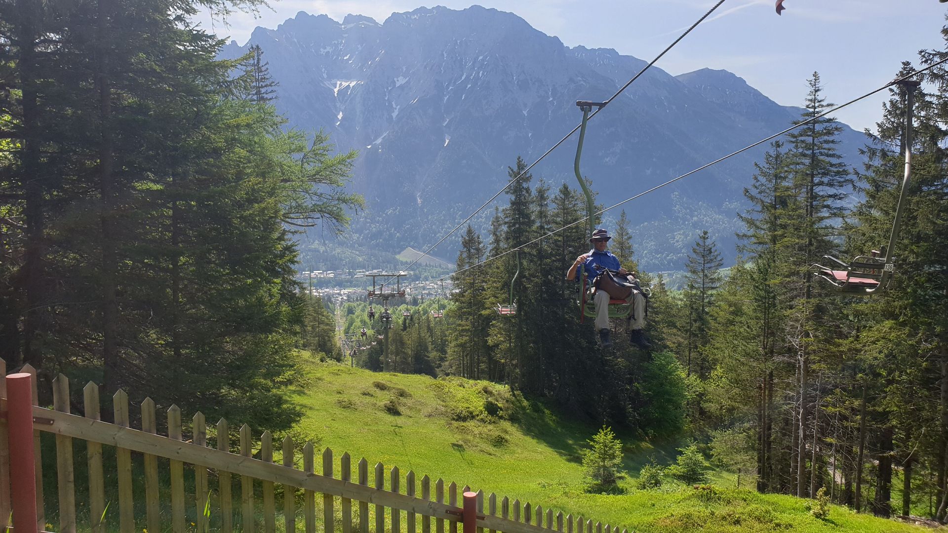 oben: Blick von der Talstation am Kranzberg zum Karwendel / unten Auffahrt zum