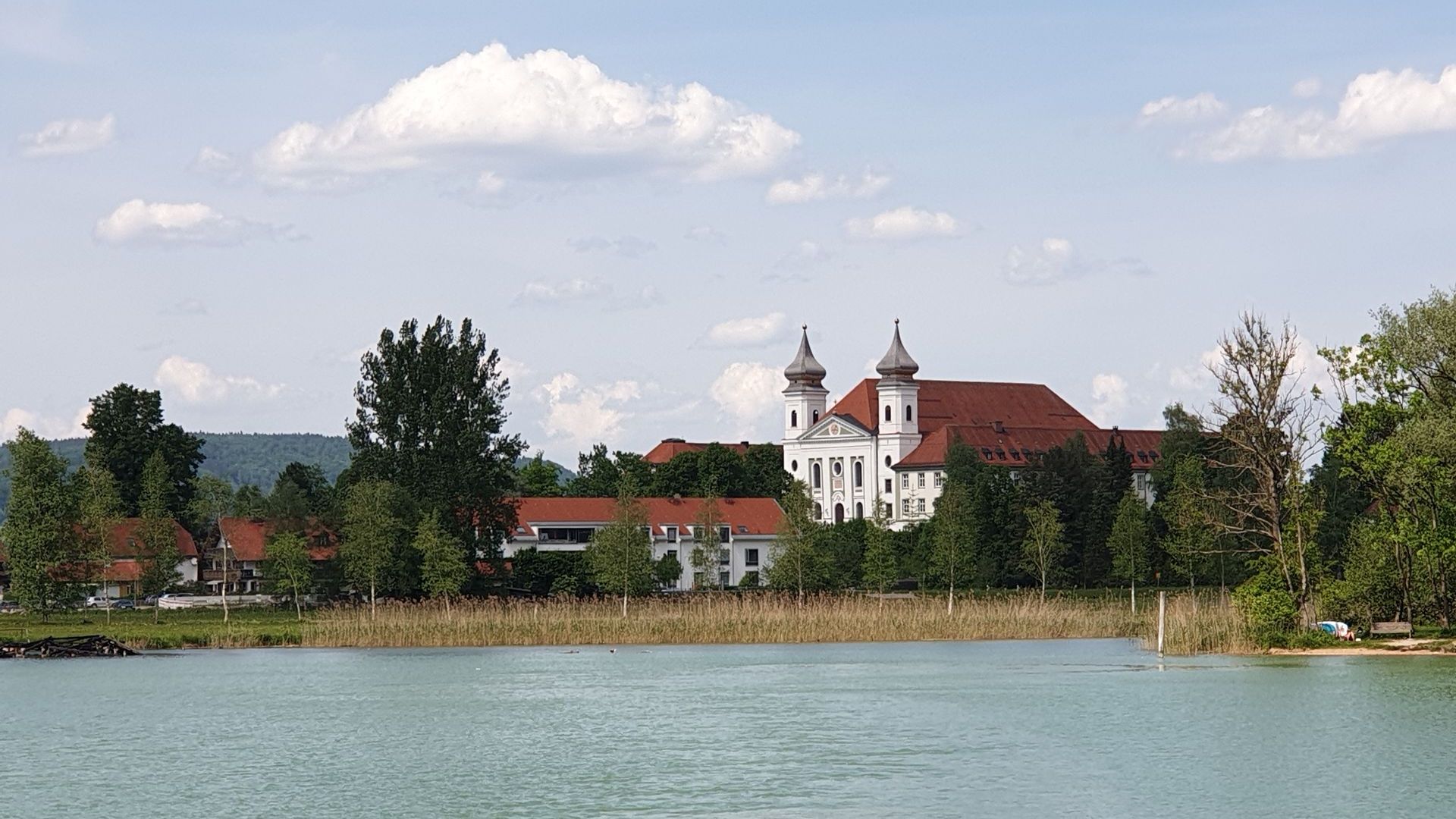 Starnberger See, links mitte: Karpfsee mit Schlehdorf